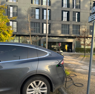 Vi kom oss omsider forbi Paris, gjorde unna resten av Frankrike og fant lading med hotell i Namur i Belgia. Hotellet var blant de mer spennende vi har sett på turen, med stor konferanseavdeling og kunstutstilling i første etasje. Vi var trøtte da vi kom fram, så dette bildet fra resepsjonen er det eneste vi tok i Namur. 😅 Men sov godt, det gjorde vi!