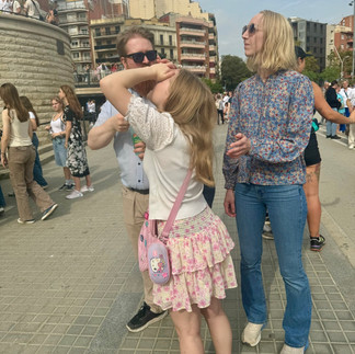 Seinere samme ettermiddag manøvrerte vi en lettere kaotisk trafikksituasjon ut av Barcelona sentrum (flere gater var stengt, mest sannsynlig fordi 12. oktober er Spanias nasjonaldag - men det fant vi egentlig aldri helt ut av...) for å hente Iris og Lykke på flyplassen. ❤️ Etter ei natt i leiligheten ved stranda sjekka vi ut - og måtte selvsagt la døtrene våre få oppleve Barcelona før vi dro videre.