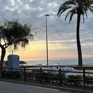 Sand, sol og saltvann er ikke så verst! 🤩 Siste kveld før avreise rusla vi langs stranda til ei havn ikke langt unna, med noen trivelige restauranter. God stemning til tross for at besøket snart er over! 🥰 På lørdag kjørte vi den vesle familien til flyplassen, og kapteinen og jeg fikk en fin dag sammen alene i Barcelona 😊