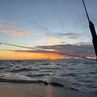 Så vi leverte leiebil, pakka oss inn i skuta, rydda på plass seil og seilposer, provianterte - og kasta loss like etter solnedgang. Styrkvinnen var riktig trist for å reise herfra etter så kort tid, og A Coruña var riktig vakker i kveldsmørket. ❤️